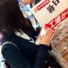 【upskirt2037逆さ撮りJK】お友達と買い物中にフロントに刺繍があしらわれた白Pを撮られるプリプリのお尻がエロいJK